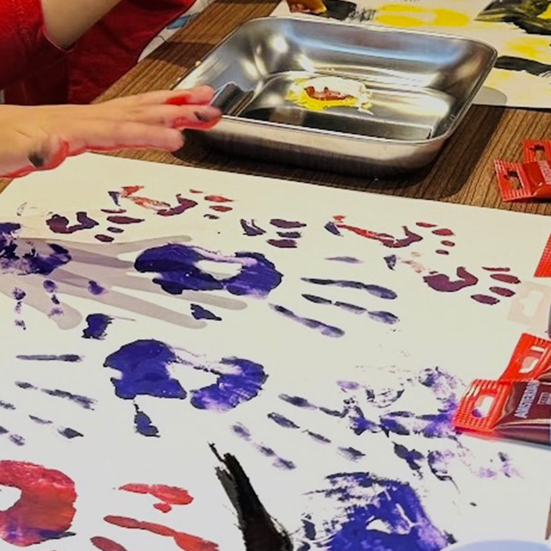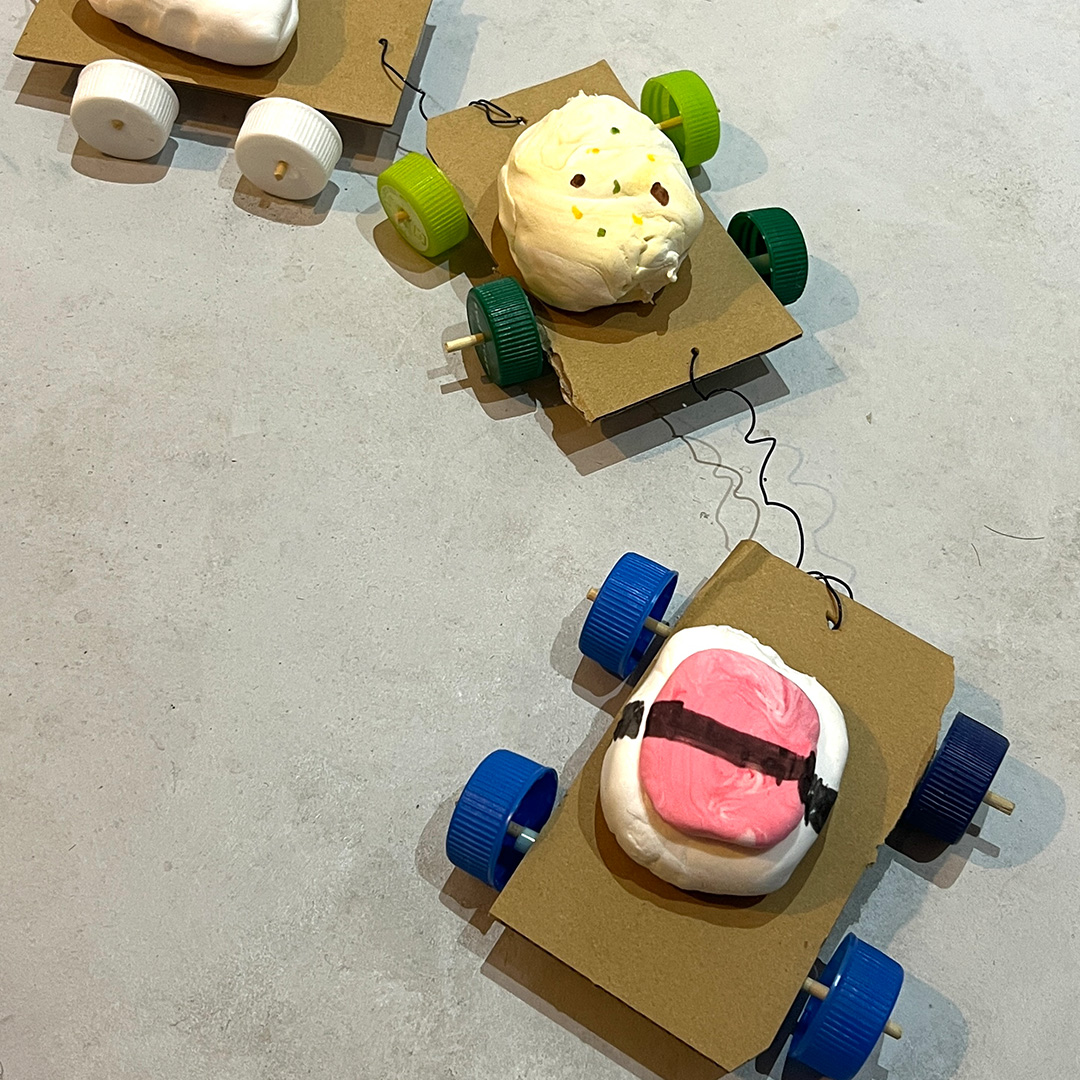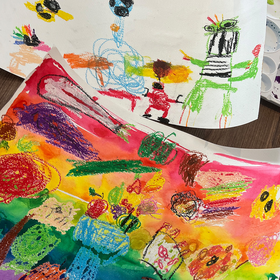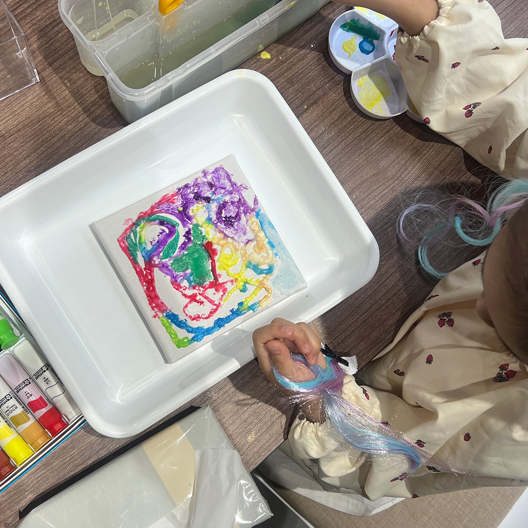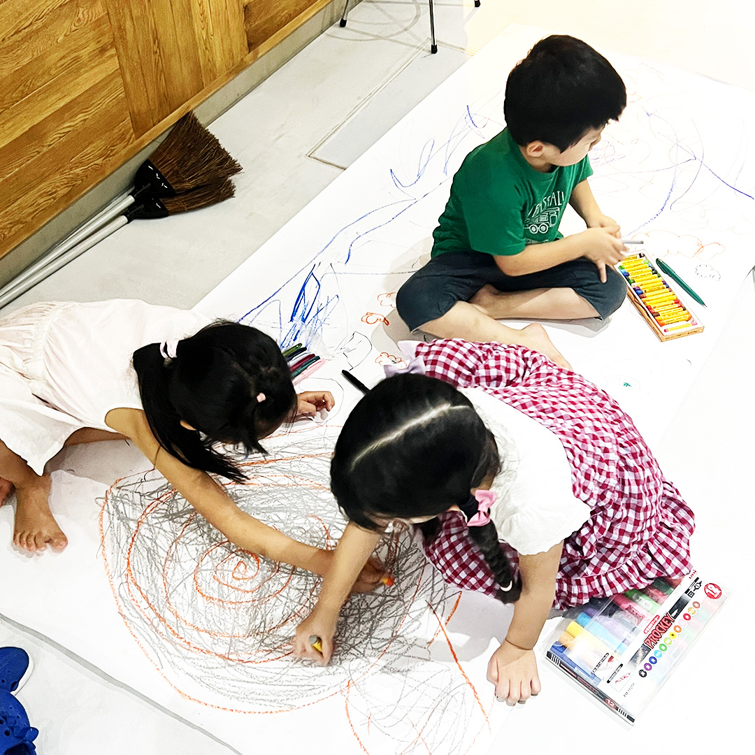 製作するアートワークだけでなく、その途中にある発見や工夫、感じた気持ちを大切にします。褒めるだけではなく、選んだカタチや色の組み合わせについて、こどもたちが自分の選択に自信をもつように寄り添います。また、挑戦していくなかでうまくいったりいかなかったり、迷ったりすることを受け止め、そこから学びや次のアイデアががあることを共に学びます。